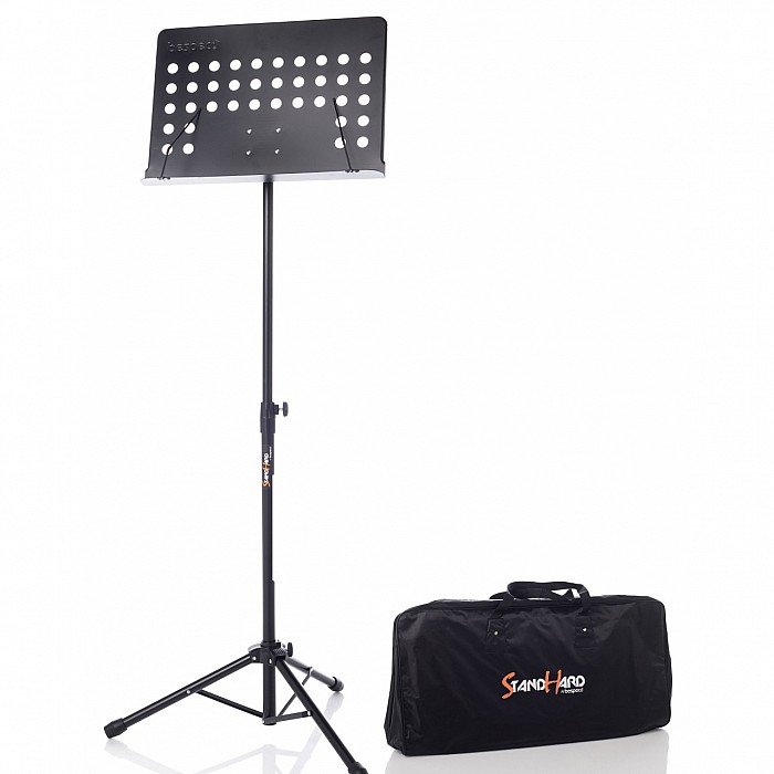 • Sheet music stand made of a perforated steel book plate (SH200B) and a steel tripod base (SH200)