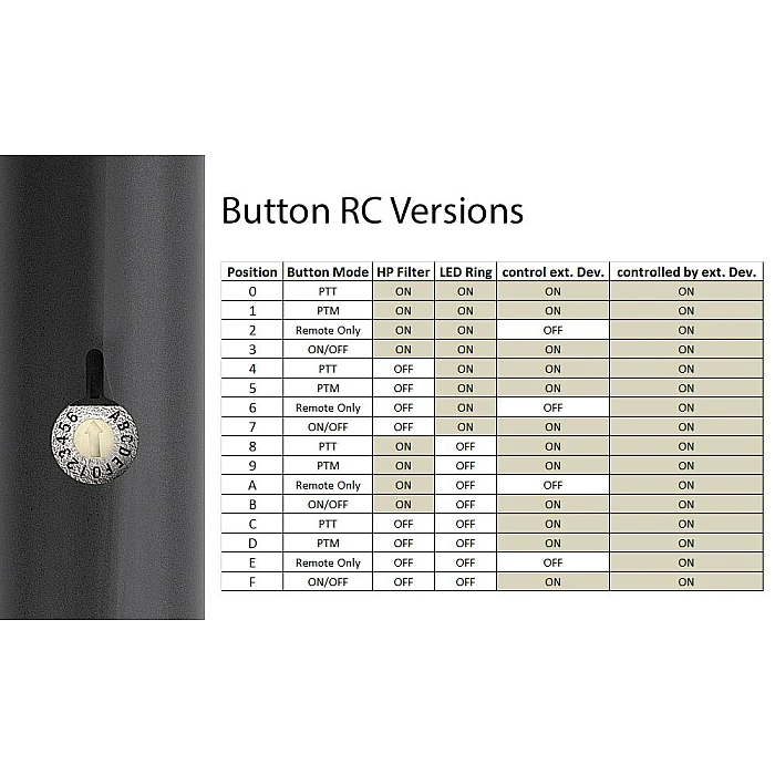 In addition to the features of the SP variants, the RC variant provides the option of external control. Furthermore, when operating the microphone button, an external device can be controlled via the control output.