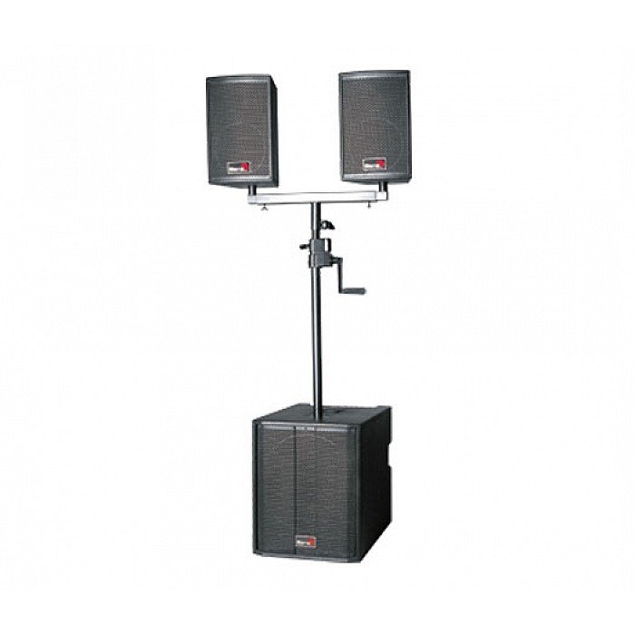 2000TⅡ-2 is a compact active sound system consisting of two single 8" two-way full-range satellites and a single 15" double-toroid subwoofer. The subwoofer is equipped with a three-channel power amp and all the electronics required to drive the bass bin and satellite, such as preamps, stimulus, compressor & expander, 50~250Hz bass crossover, EQ, PEQ, noise gate, ect. The total output power (RSM ) is over 800W. Painstakingly fine-tuned to match the speakers for th best possible sound, the electronic circuitry protects it from overloads and makes this system very easy to operate.