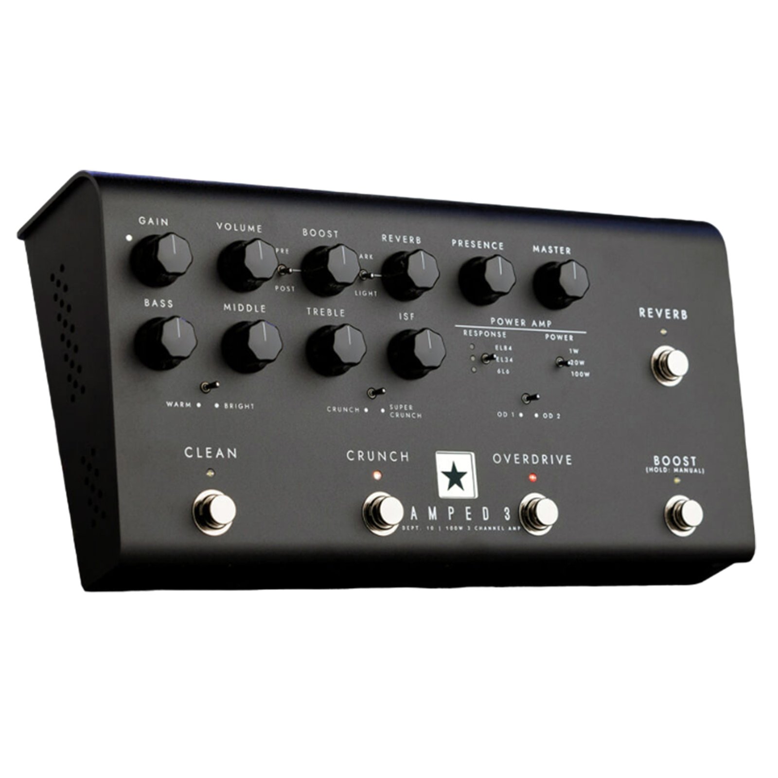 The Blackstar Dept. 10 AMPED 3 is a gig-worthy 100-watt guitar amp head that fits easily on your pedalboard. This floorboard amplifier faithfully re-creates the tone and feel of a traditional tube amp, with three distinct channels — with two selectable voices per channel — that range from high-headroom clean to saturated distortion. There’s plenty of sound shaping onboard, including a 3-band EQ, Presence, and Blackstar’s trademark ISF control. Three distinctively different power amp responses ensure an authentic amp-like feel to match the AMPED 3’s killer tone. You also get footswitchable Boost and Reverb, plus a high-quality effects loop, MIDI control, and 9-volt pedal power outputs. To top it off, this guitar amplifier pedal includes Blackstar’s next-gen Cab Rig DSP speaker simulation. Best of all, when you find a sound and setup you like, you can store your settings as an easily recallable patch. You can connect the Blackstar Dept. 10 AMPED 3 to an 8- or 16-ohm speaker cabinet, or route a studio-quality miked-cab tone straight to your DAW via USB-C.