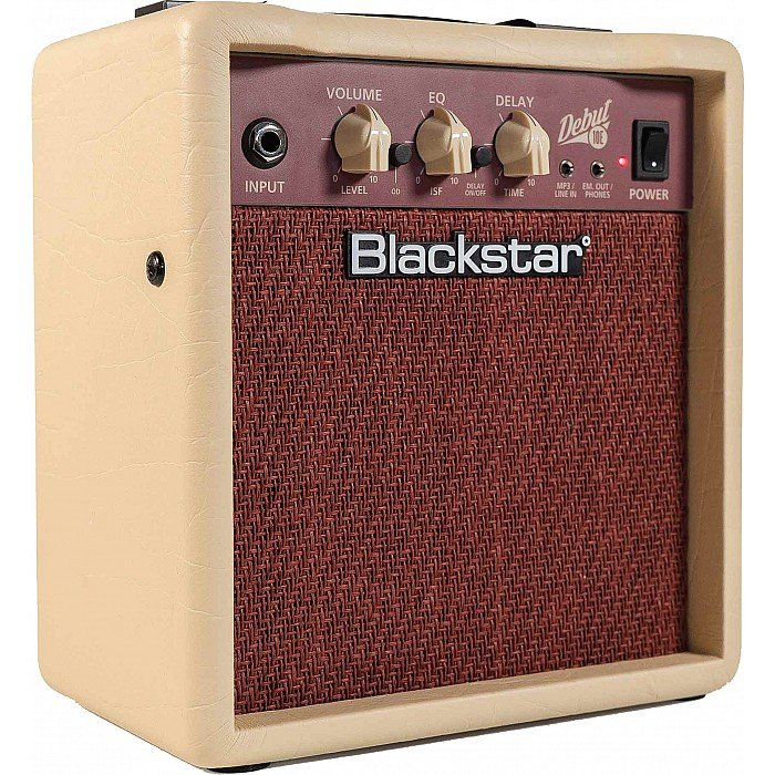 The all-analog Blackstar Debut 10E 10-watt stereo practice amp sets a new standard in on-the-go combo amplifiers. Experience inspiring tone and feel as you run the Debut 10E's twin 3-inch stereo speakers through their paces. Conjure up decades of coveted British and American tones with Blackstar's patented Infinite Shape Feature. Add dimensionality to your playing with a built-in digital tape delay as you jam along to your favorite tunes via the onboard MP3 input. A speaker-emulated output gives you that "miked stack" response at silent volumes, whether you're wearing headphones or recording direct. And with its classic cream/oxblood cosmetics and simple analog-style controls, the Debut 10E makes the perfect centerpiece to your control room, stage, or performance platform. Looking for more from a practice or recording amp? You'll definitely want to have a look at/listen to the Blackstar Debut 10E combo guitar amplifier.