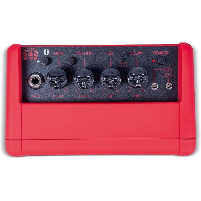 When road warriors the Dead Daisies discovered the Fly 3 Bluetooth guitar amp, it quickly joined their Blackstar collection. Whether on the bus, backstage, or at home, this pint-sized powerhouse has become the band’s go-to warm-up amp, delivering big sound and intelligent design in a travel-friendly package dripping with Blackstar innovation. Tricked out in red, this special-edition 3-watt amp condenses its 2-channel power set into four parameters, featuring custom skull control knobs and a grille emblazoned with The Dead Daisies’ name and logo.