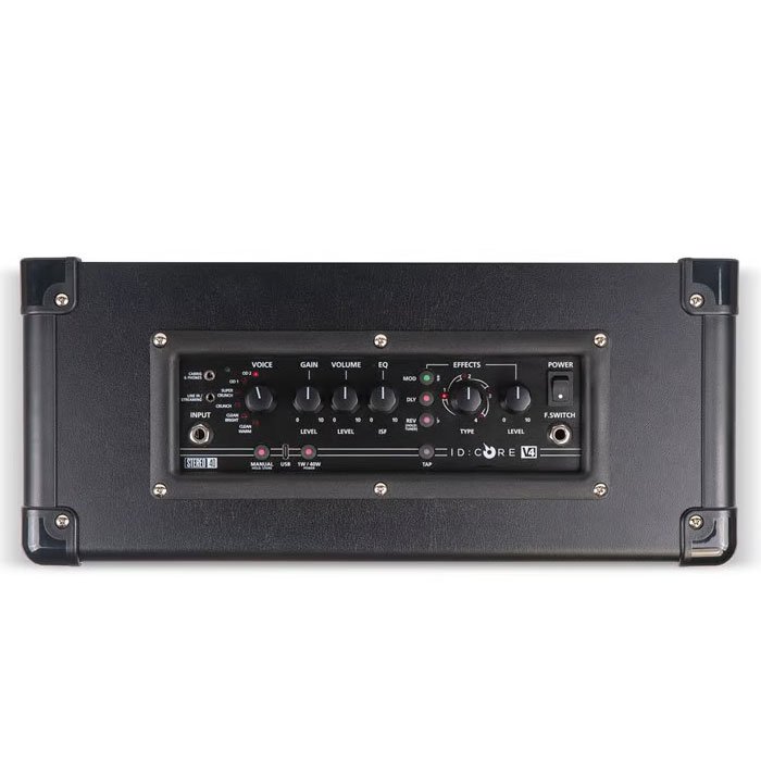 The Blackstar ID:Core 40 V4 is packed with a massive spread of tones, by virtue of Blackstar's Infinite Shape Feature (ISF). When turned fully counterclockwise, you'll lend an American characteristic to your voice, with a tight bottom end and aggressive middle. Turned all the way to the right, you'll enjoy more of a British vibe, with a woodier sound that's less aggressive. However you dial in the ID:Core 40 V4 between the two, you'll enjoy a musical response that just asks to be taken onstage or into the studio. Playing through the ID:Core 40 V4 is an immersive experience, on account of Blackstar's Super Wide Stereo technology. Not only do its 12 effects sound amazing in stereo, but plugging your mobile device into the ID:Core 40 V4's Line In/Streaming jack results in a multidimensional jam session that's a whole lot of fun.