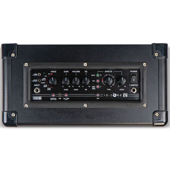 The ID:Core V4 Stereo 20 comes loaded with six ear-grabbing amp voices that run the gamut from classic and boutique-style cleans all the way to rowdy, hot-rodded high-gain. An array of modulation, delay, and reverb effects arm you with all the ear candy you can handle. Blackstar's patented Infinite Shape Feature (ISF) enables you to dial your drive from American to British character. Meanwhile, its Super Wide Stereo technology makes playing through the ID:Core V4 Stereo 20 a truly immersive experience. Thanks to its function-per-knob control scheme, plugging into the Blackstar ID:Core V4 Stereo 20 and rocking out are intuitive affairs. And by virtue of its power reduction feature, you can do so without annoying your neighbors. The ID:Core V4 Stereo 20 includes a 4-channel USB-C audio output for pro-level recording and re-amping, essentially transforming the amplifier into an audio interface. You'll also appreciate its phone-ready bidirectional TRRS streaming jack that lets you connect audio from your media library, jam along, and capture performances directly onto your mobile device. To top it off, the ID:Core V4 Stereo 20's linear speakers reproduce movie, gaming, and music audio playback with full fidelity, enabling you to jam along with anything.