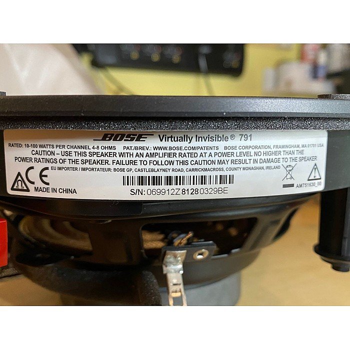Installing the Bose® 791 Virtually Invisible® in-ceiling speakers is easy four clamp screws secure each speaker to the ceiling. The infinite baffle design eliminates the need for a separate speaker enclosure it uses the space above the ceiling instead. Once you've positioned the speakers, just tighten the clamp screws and twist the grilles into place. The Bose® 791 Virtually Invisible® in-ceiling speakers finish is as elegant as it is unobtrusive. You can even paint the Bose® 791 Virtually Invisible® in-ceiling speakers speaker grilles to match your décor.