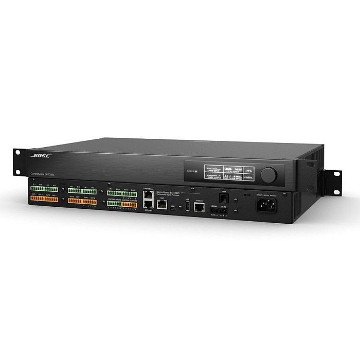 The ControlSpace EX-1280C conferencing processor includes 12 mic/line analog inputs, 8 analog outputs, 8 AmpLink digital outputs, 12 acoustic echo cancellers (AEC), 64x64 Dante™ and a flexible, open architecture signal processing to meet the needs of a wide variety of integrated-microphone audio conferencing applications. The open architecture design is configured using ControlSpace Designer and features drag and drop programming and allows limitless design possibilities.