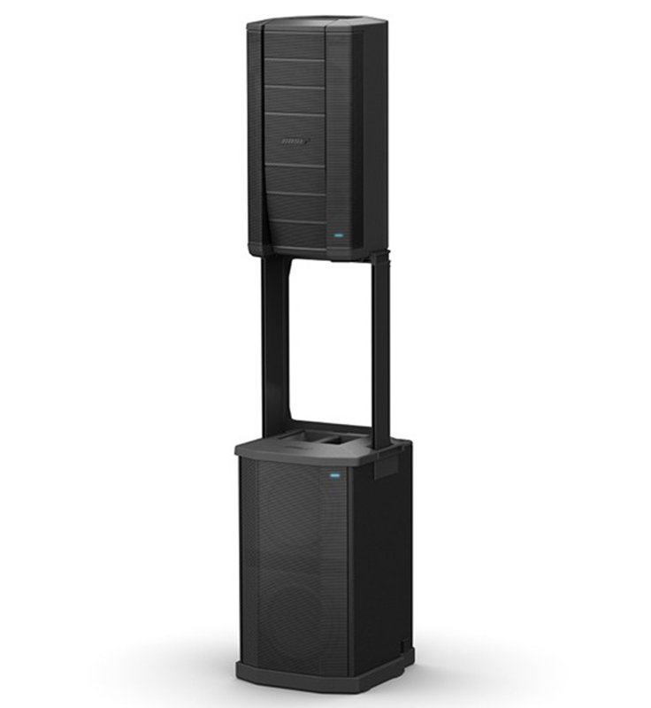 The Bose® F1 Model 812 Flexible Array Loudspeaker is the first powered portable loudspeaker that lets you control its vertical coverage pattern. Simply push or pull the array into position to create “Straight,” “C,” “J” or “Reverse J” coverage patterns. And once set, the system automatically changes the EQ to maintain optimum tonal balance for each coverage pattern. So whether you’re playing at floor level, on a stage, or facing raked seats or bleachers, you can now adapt your PA to match the room.