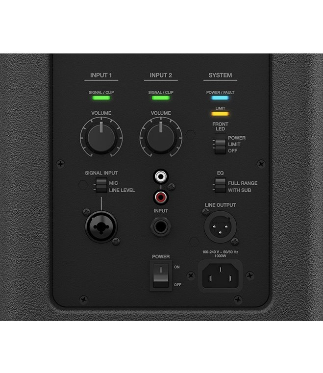 Bi-amplified design with 2 high-output, Class-D amplifiers to separately power the FLEX array and 12-inch LF driver