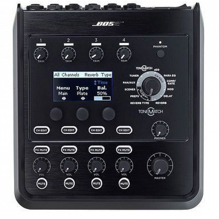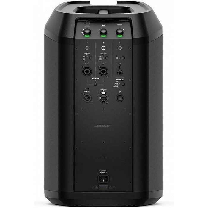 On the back of the Bose L1 Pro8’s subwoofer, you'll find a convenient 3-channel mixer with two 1/4-inch and XLR combo inputs, each with 48V phantom power for use with condenser mics, active ribbon mics, and mic boosters. For connecting laptops and other audio devices, the L1 Pro8 contains 1/4-inch and 1/8-inch auxiliary inputs, or you can pair any Bluetooth-enabled device for wireless streaming. Illuminated digital rotary encoders for the volume, bass, and treble controls are easy to see in dark venues. Need more inputs? No problem! Simply connect a Bose T4S or T8S Tone Match mixer via ToneMatch cable to the L1 Pro8’s ToneMatch port.