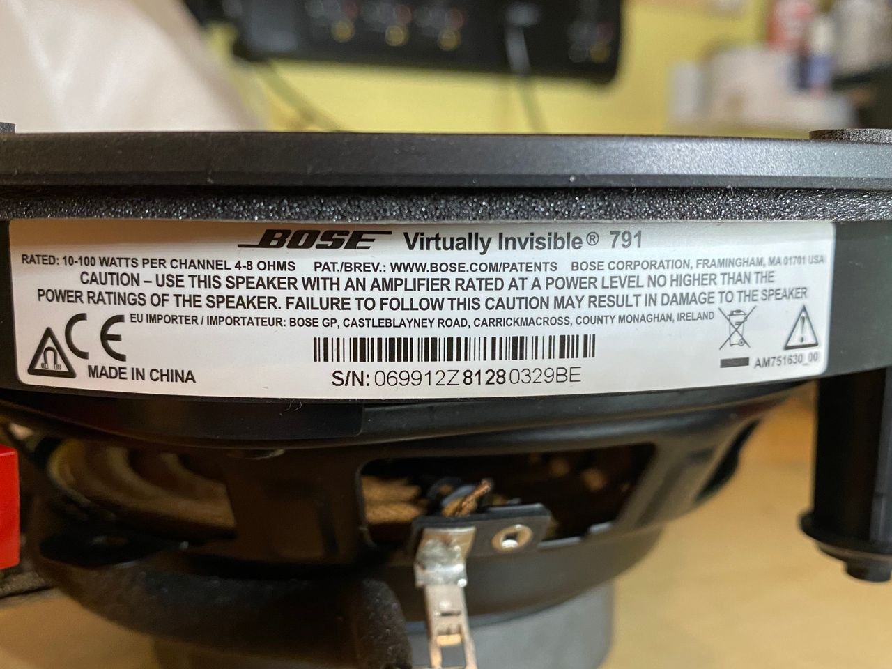 Installing the Bose® 791 Virtually Invisible® in-ceiling speakers is easy four clamp screws secure each speaker to the ceiling. The infinite baffle design eliminates the need for a separate speaker enclosure it uses the space above the ceiling instead. Once you've positioned the speakers, just tighten the clamp screws and twist the grilles into place. The Bose® 791 Virtually Invisible® in-ceiling speakers finish is as elegant as it is unobtrusive. You can even paint the Bose® 791 Virtually Invisible® in-ceiling speakers speaker grilles to match your décor.