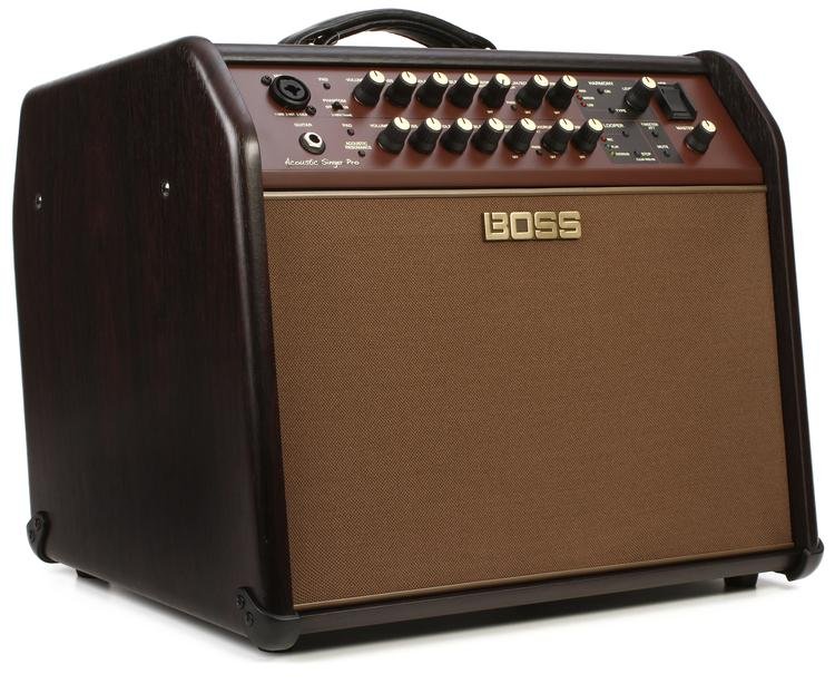 With 120 watts of power and a custom, bi-amped speaker set on deck, the BOSS Acoustic Singer Pro dispenses punch and dynamics never before available in its class. Its 2-way speaker system consists of an 8" woofer and 1" hi-frequency tweeter to reproduce the body of your instrument and soul of your voice.