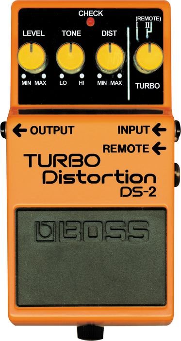 The Boss DS-2 Turbo Distortion with Remote features twin Turbo modes! Mode One produces warm and mellow distortion with flat frequency response. Mode Two provides a biting distortion with a midrange boost that's great for leads. The built-in remote jack on the Boss DS-2 Turbo pedal allows you to connect to an external footswitch such as the FS-5L for instant, handsfree mode switches.