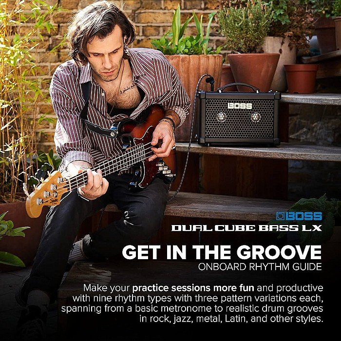 Leveraging advanced BOSS technologies to produce a versatile, portable, and truly go-everywhere design, the BOSS DUAL CUBE BASS LX Bass Amplifier is a feature-rich powerhouse that punches well above its size. Designed for home practicing or live performing, the Dual CUBE Bass LX is well equipped for either application with an ultracompact form factor, high-quality tones, numerous built-in effects, and flexible analog and digital I/O for an extended range of performing, recording, and livestreaming scenarios. The Dual CUBE Bass LX comes with five preamp types, six FX types, three-band EQ control, onboard rhythms with 27 different patterns, a compression/drive control tuned specially for bass, and more.