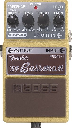 Fender amps of the '50s and '60s are beloved and coveted by guitarists around the world. Thanks to BOSS' technology and tone know-how, the new FBM-1 pedal brings the natural, fat, rich, bright tone of the Fender Bassman to a BOSS pedal. In conjunction with Fender, the BOSS FBM-1 re-creates the legendary tone of the 1959 Fender Bassman. Features include the same controls on the original Bassman amp: Presence, Treble, Mid, and Bass EQ controls. The FBM-1 pedal also functions perfectly as a "pre-gain pedal" placed before an already overdriven amp to add the tone character of the Bassman.