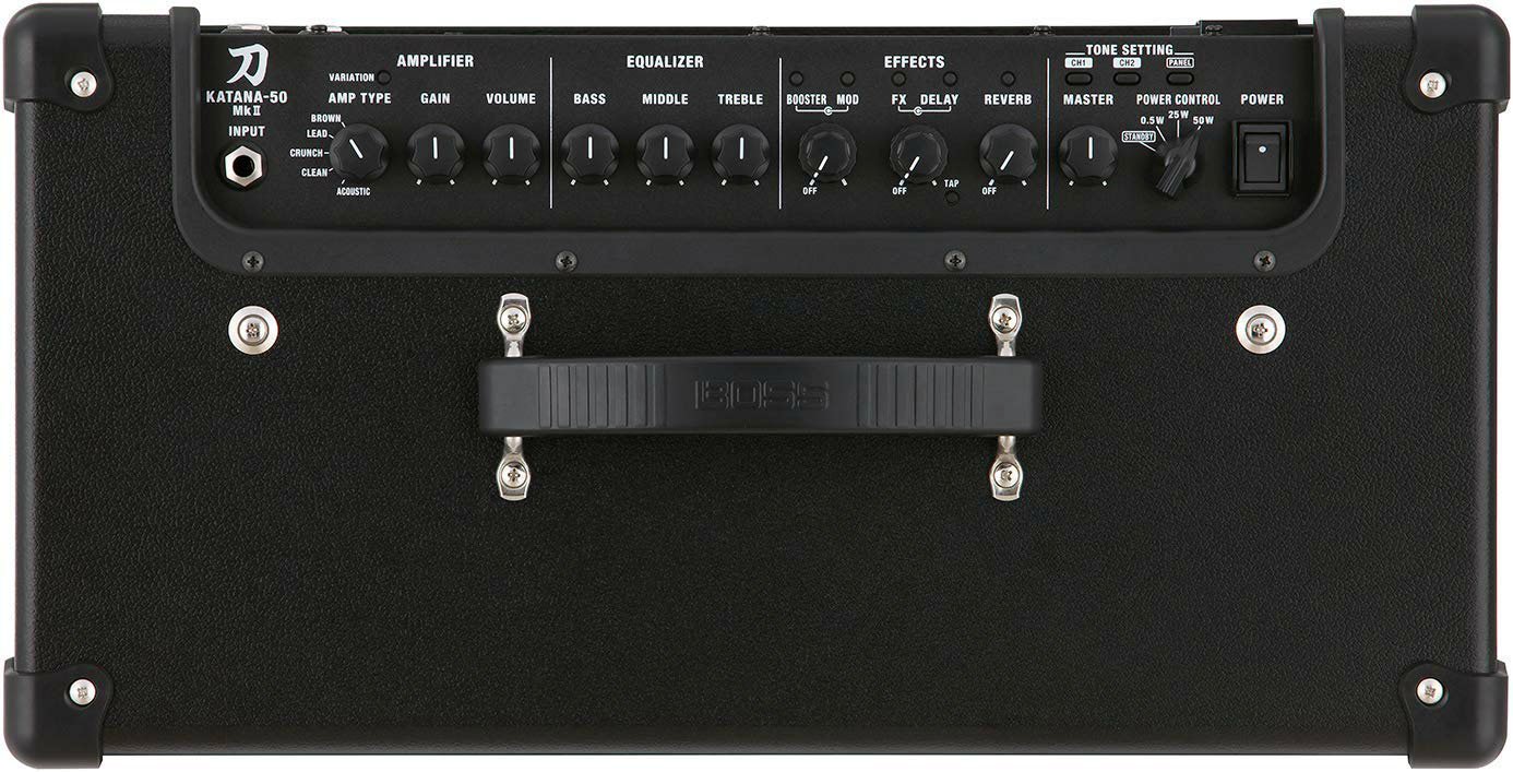 With five distinct amp characters to choose from, support for acoustic-electric guitars, and access to a wide range of customizable effects, the BOSS Katana MkII series represents a new generation of flexible amplifiers for practice and performance. A set of familiar controls allow for fast tone shaping, and you can use the BOSS Tone Studio editor software to further customize your amp settings and effects. The Katana 50 MkII is also equipped with an adjustable Power Control that allows you to achieve cranked-amp tone at lower volume levels.