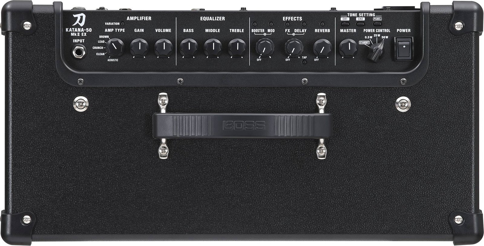 Power Amp In(put): Got a floor unit or tube preamp you can't live without? You can access all 50 watts of the Katana's Class AB power section using the MkII EX's power amp input. Here you bypass everything before the power amp and speakers, so what you hear is exactly what you expect — only live and in living color. Versatile amp models: The classics you love are back in full effect in the Katana MkII EX. Only now, you can access new variations on the original five amp models to create an even more versatile gigging platform, from country cleans to metal gains to acoustic-voiced amplification. BOSS Tone Studio: Customizing your sound within the Katana MkII EX is easier than ever using the new and improved BOSS Tone Studio software; 60 BOSS effects, channel-by-channel EQs, adjustable routing, and much more await your every command.