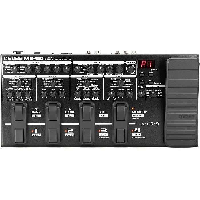 The BOSS ME-90 is the company's most advanced ME-series all-in-one guitar processor to date, arming you with superior 24-bit AD/DA, powerful 32-bit floating-point processing, and intuitive stompbox-style operation. This tone-packed multi-effects pedal houses 11 onboard AIRD amp models, 60 flagship-grade effects, a dedicated amp section, and seven simultaneous effects categories. The ME-90 also supplies eight multifunction footswitches and an expression pedal for real-time control. Manual mode unlocks pedalboard-style operation, and Memory mode enables you to toggle between complete patch setups. You can also use BOSS Tone Studio software for fast-and-easy parameter editing, amp and effects configuration, and more. The ME-90 includes a premium-quality IR loader, an effects loop, USB-C connectivity, and Bluetooth capabilities via an optional adapter. Compact, battery-powered, and teeming with some of the best tones BOSS has ever produced, the ME-90 makes building a custom guitar rig easier than ever.