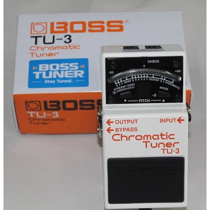 One of the world's top-selling stage tuners, the BOSS TU-2, has evolved and improved into the TU-3 pedal tuner. Housed in a tank-tough BOSS stompbox body, the TU-3 chromatic tuner features a smooth 21-segment LED meter with a High-Brightness mode that cuts through the harshest outdoor glare. Choose between Chromatic or Guitar/Bass tuning modes. Accu-Pitch Sign gives you pinpoint visual verification that tuning is complete. The BOSS TU-3 tuner incorporates a convenient Note Name Indicator that can display notes of 7-string guitars and 6-string basses, while the Flat-Tuning mode can support up to 6 half-steps. It's the kind of instrument pedal tuner that no performing guitarist or bass player should be without.