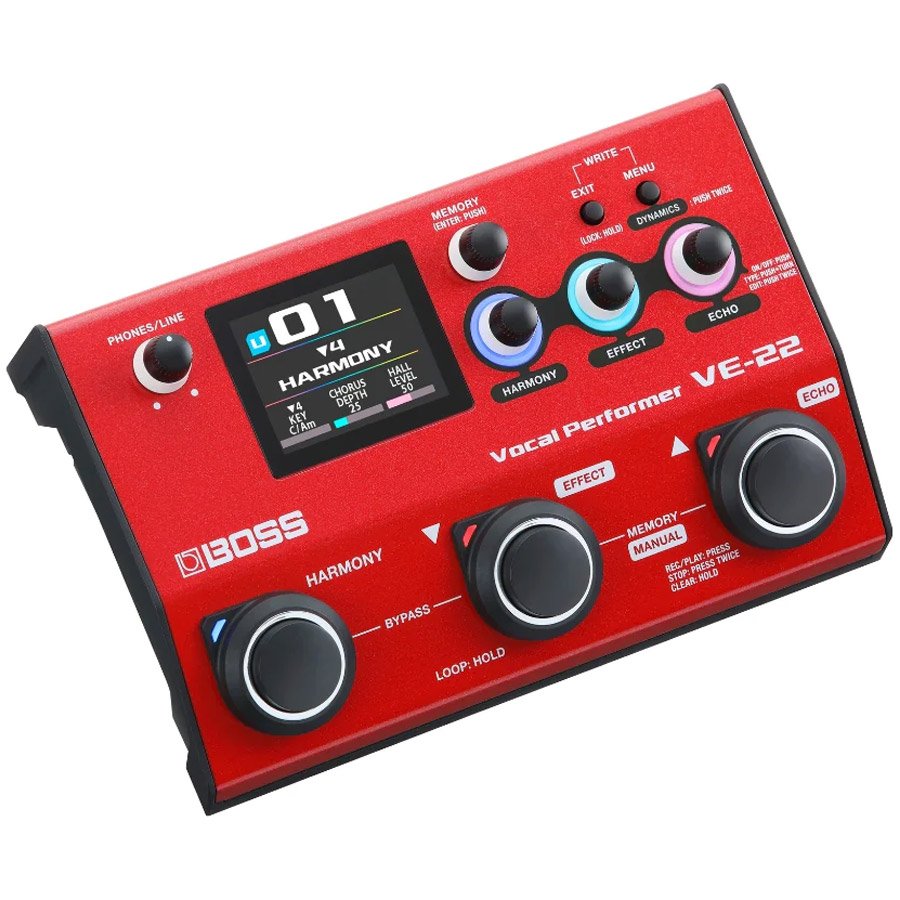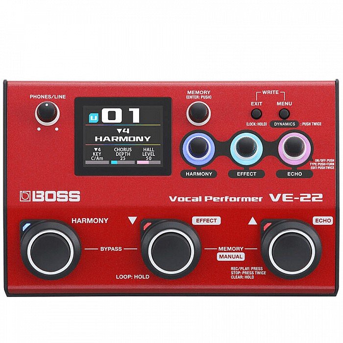 The VE-22 is more than an amazing tool for live performance — you can use it to record your voice, too. BOSS tells Sweetwater that the pedal has a USB-C connector and an onboard audio interface. Plugging it into your computer via the USB-C port lets the user record performances, practice sessions, or vocal tracks straight into your DAW, so you never lose anything. Make no mistake, with the VE-22, BOSS has birthed a recording and performing powerhouse. With the VE-22, you get a three-pronged vocal processing attack, divided clearly into the respective Harmony, Effect, and Echo sections. What’s more, there is an additional Dynamics section accessed via the menu button. Like the VE-20, the design is straightforward with a simple control layout, making it easy to do basic operations like activating the looper or switching effects in different sections of your songs. There is a range of basic enhancement effects including compression, EQ, reverb, echo, delay, and more. In addition, there are more creative processing options like distortion, ring modulation, lo-fi, and radio effects, as well as other specialized effect types.