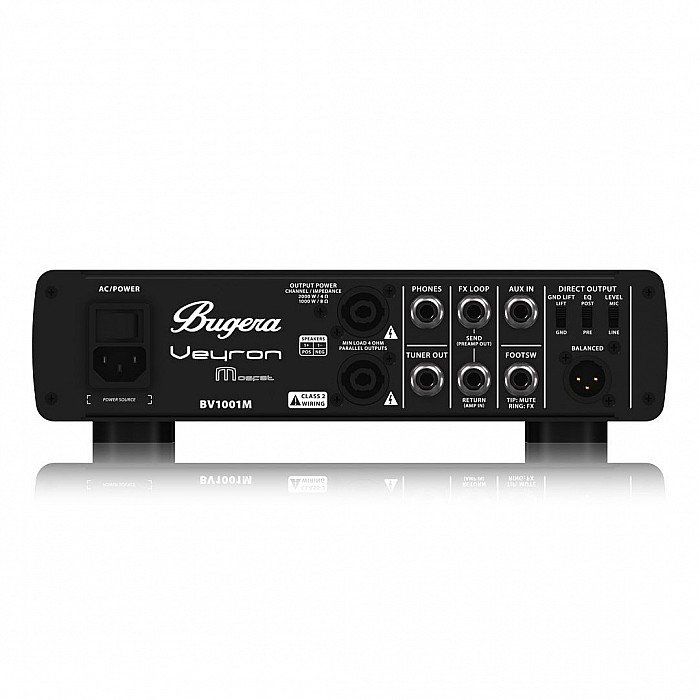 Huge on power, the Bugera Veyron M BV1001M bass head rocks a whopping 2000 watts while keeping the weight down, thanks to the high-efficiency Class D power amp. The preamp is driven by classis MOSFET technology, which imparts a warmth to your tone. Getting to gig should be no problem, due to the convenient built-in carrying handle. When you're at the gig, the footswitchable FX loop simplifies your onstage setup, and the dedicated balanced DI makes it easy to connect to the soundboard. And this just scratches the surface of the Bugera Veyron M BV1001M bass head's features!