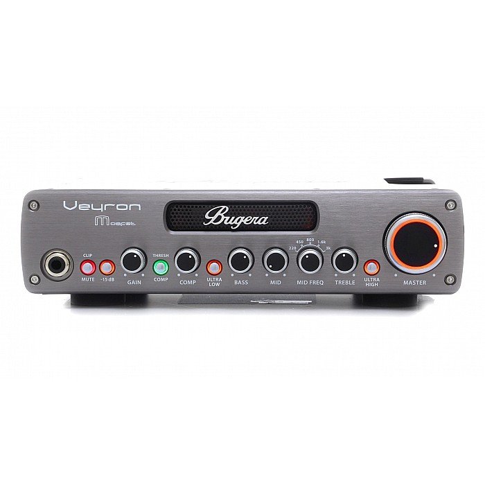 Huge power and light weight are great features, but there's so much more to the Bugera Veyron M BV1001M bass head. The passive Gyrator EQ circuitry gives you authentic tube-style tone, and a selectable mid-frequency switch conjures five classic sound variations so you shape the sound for your particular playing style. We know compression, and we know you'll appreciate the compression options included in the Bugera Veyron M BV1001M bass head. The studio-grade compressor provides transparent, musical compression and gently engages and smooths out peaks for the ultimate tone. But it doesn't stop there, as Bugera built in special Dynamizer technology that further enhances your tone. What is this Dynamizer and what does it do? Think of it as parallel compression, like that used in the studio for years. You signal is split into two discrete signals: a dry version and a heavily compressed version. The Dynamizer recombines these separate signals, giving you the ability to get the most out of your tone! Get big power and tons of tone and feature with the Bugera Veyron M BV1001M bass head!