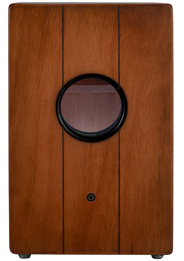 The Pearl Electric Crate Cajon includes a Piezo Trigger and 1/4" Jack so you are ready to plug and play. The body of this e-Cajon is constructed using Shorea plywood and has a crate design that features a meranti faceplate. Meranti is a wood known for its relative hardness and straight grain making it ideal for cajons. A built-in bass port magnifies the massive low-end tone of the Cajon while two sets of fixed snare wires provide a bright, crisp snare response. Whether you are plugged in or playing acoustic the Electric Cajon has a great bass sound. A preinstalled Piezo Trigger and 1/4" jack will allow you to plug into any PA or amp to amplify the sound. This Cajon has a silkscreened finish that features a classic Willie Seymour Sparks design.