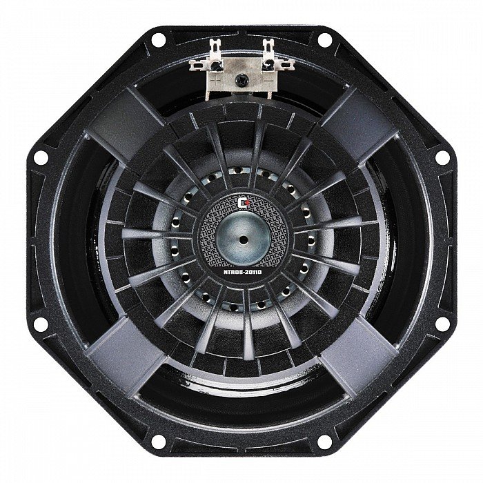 The neodymium NTR08-2011D 8", from Celestion, incorporates a 2" copper voice coil, and a copper-sleeved pole for reduced inductance. An octagonal chassis profile is great for line array applications, while the M-roll cloth surround allows for progressive excursion control, and generates a smooth frequency response. Intelligent heat management built into the motor assembly and chassis enables reduced thermal compression.