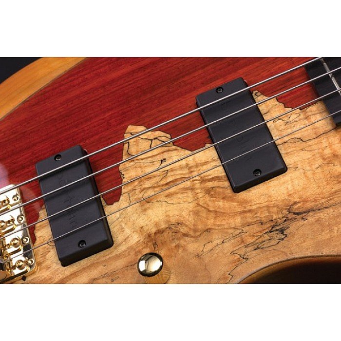 The Jeff Berlin Rithimic 4 String Bass features a custom designed alder body with spalted maple and padouk top which has its own unique clarity and brightness. The Bartolini Jeff Berlin custom soapbar pickups are the only dual coil humbucker pickups for neck and bridge designed by Jeff Berlin. These humbuckers offer warm, deep tones with a piano-like low end, and feature a split coil design with a well-defined magnetic field aperture for maximum clarity and tonal response. The Rithimic also features a Babicz FCH4 Gold Bridge. Its full contact hardware technology results in an increased dynamic range, increased sustain and pitch stability. Plus, the string action and intonation adjustments remain secure, even when removing strings.