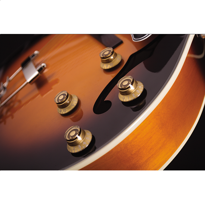 The Yorktown is equipped with a floating tune-o-matic bridge for fine-tuning and perfect intonation needed for playing complex chords all over the neck. The tailpiece is a classic harp-style which imparts class and elegance while providing tuning functionality and stability.