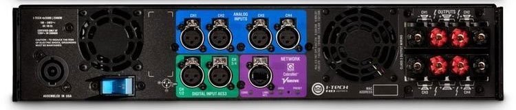 • The amplifier has analog XLR inputs and outputs, as well as AES/EBU digital XLR inputs and outputs. Speakon and Binding Post outputs are also provided