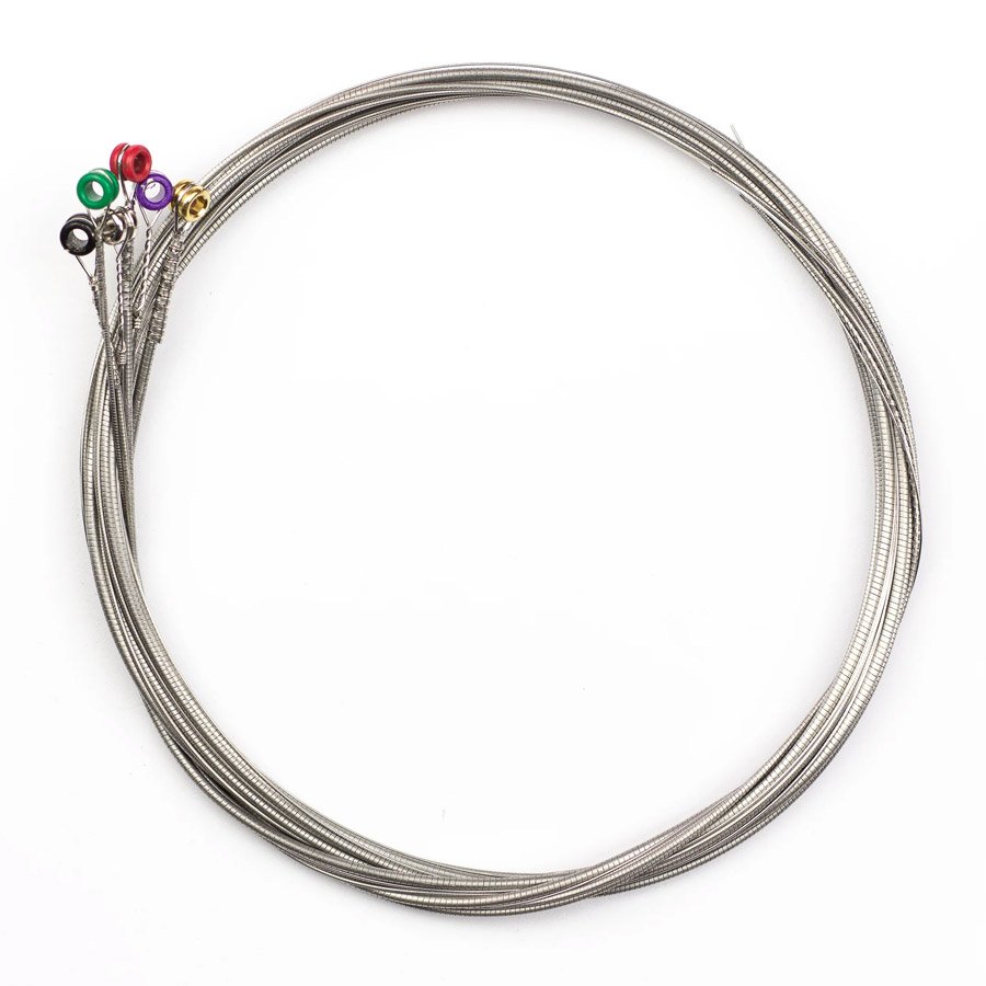 D'Addario's environment-friendly string packaging does away with the nylon plastic outer envelope, paper insert, and paper envelopes for each string. The strings come inside a 100% recyclable cardboard package that inhibits string corrosion. D'Addario environmental string sets are now being made with new, brighter colored ball ends. The colored ball ends are specially coated with a new paint (green, red, purple...) that is easily recognizable and makes it even easier for you to identify each string.