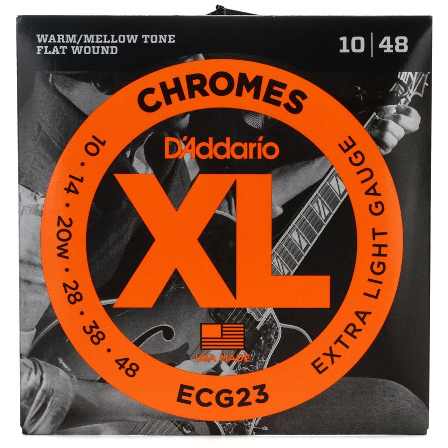 D'Addario Chrome Extra Light Electric Guitar Strings are revered for their warm tone and ultra-smooth feel. Stainless steel underwindings on hex cores build a foundation for the delicate outer ribbon winding. After the winding is applied, each string goes through 3 polishing steps. Great for classic jazz tone and rockabilly twang.