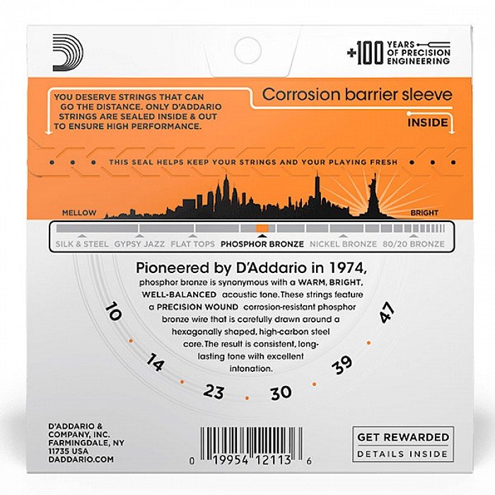 Spesifikasi D Addario EJ15 Phosphor Bronze Extra Light Acoustic Guitar Strings