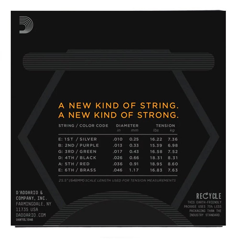NYXLs will bend farther, sing louder, and stay in tune better than any string you’ve played before. As our premium uncoated electric string, NYXLs offer higher break strength, enhanced tuning stability, and accentuated mid-range frequency response, providing more presence and crunch to cut through the mix. Made with a NY Steel core, premium nickel-plated steel wrap wire, and Fusion Twist technology, NYXL electric guitar strings are tough enough and versatile enough to handle anything. 10-46 Regular Light is our most popular gauge, providing a nice balance of tone and playability. So, what really makes NYXLs so much different than standard D’Addario strings? First, they’re built with an exclusive high-carbon steel core wire for greater durability and a higher tolerance for alternate tunings.