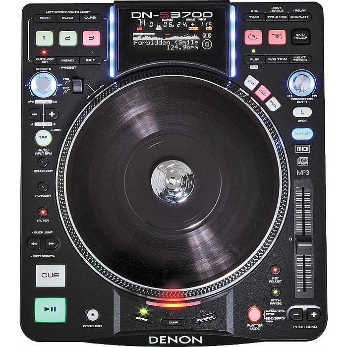The Denon DN-S3700 Direct Drive Turntable Media Player and Controller is a solid, single-deck portable DJ instrument that provides working DJs with a host of useful features for enhanced creative flexibility. Most notably, thanks to its large 9" spinning platter design, the DN-S3700 literally offers the "best of both worlds" from both digital and analog realms. In addition to a host of advanced digital features, including USB and MIDI control, the sleek and elegant media player includes a built-in authentic vinyl record for surface control driven by Denon DJ's High Torque Direct Drive motor. This provides users with the classic and unmistakable feel of true vinyl.