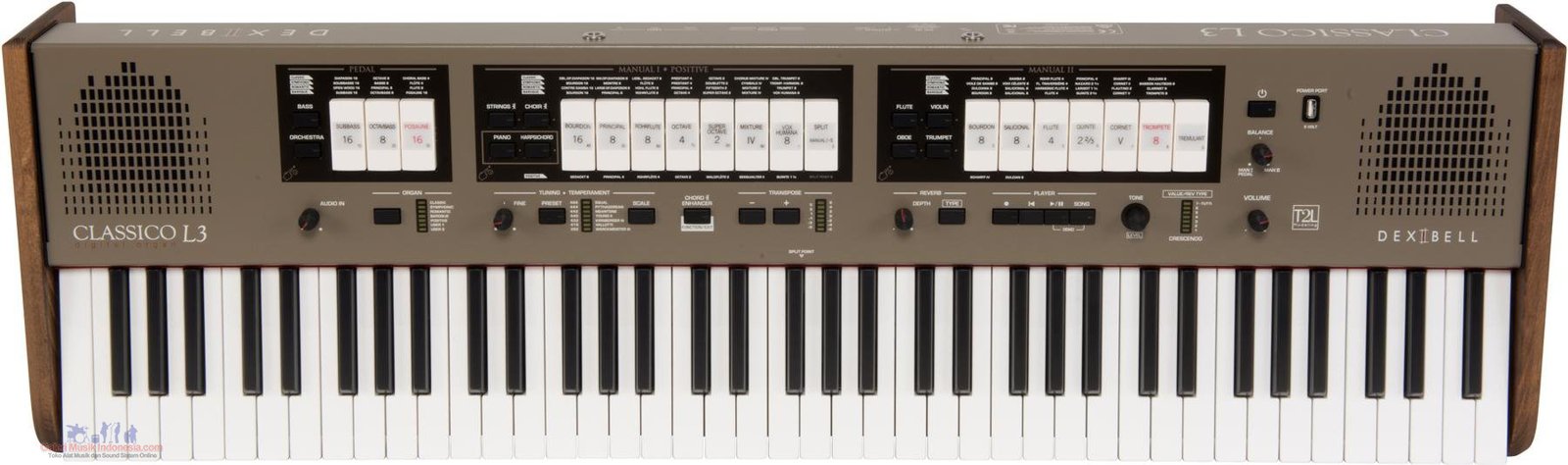 The DEXIBELL CLASSICO L3 is a 76-key digital organ with sparkling audio and modern features and connectivity. Among its many attractive aspects is its radically clear and vibrant audio quality. It exceeds the current standard of 16-bit and 44.1 KHz with the use of higher definition 24-bit technology, both in its core waveforms and also in its digital to analog conversion. The 24-bit standard together with the 48 KHz sample rate has improved the frequency response of this instrument to unprecedented levels.