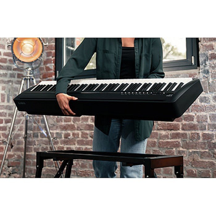 The latest addition to the highly respected ES range, the ultra-portable ES120 features an improved Responsive Hammer Compact keyboard action, beautiful Shigeru Kawai grand piano sounds, and built-in Bluetooth® MIDI and Audio connectivity, delivering gig-friendly grand piano touch and tone at a remarkably affordable price. The Kawai ES Series has been designed to deliver the finest playing experience possible within a portable piano. These stylish instruments are ideally suited to musicians seeking a piano that provides an authentic keyboard action and a selection of inspiring sounds, yet can still be moved easily, or placed on an attractive furniture stand without occupying too much space.