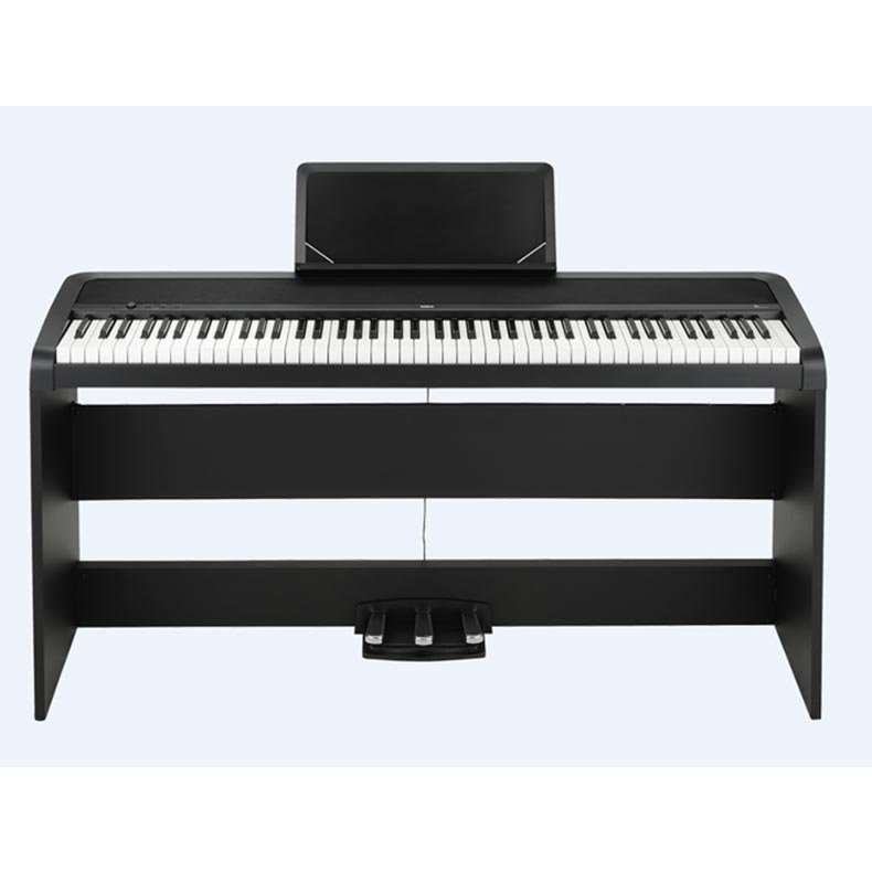 A full piano setup for home or classroom. B2SP comes with everything a pianist needs. This set packages the B2 digital piano with a easily assembled stand and a 3-pedal unit that gives you the experience of playing a real grand piano. The B2 is a new generation of digital piano from KORG focused on accessibility and ease of use. Perfect as a first piano for a new player, KORG paid special attention to the experience of playing a real piano. B2 is packed with carefully selected sounds, starting with legendary grand pianos from around the world. The B2 provides a total of 12 sounds that cover a diverse range of genres, starting with five pristine piano sounds from its new piano engine, and also providing richly distinctive electric piano, organ, harpsichord, and strings.