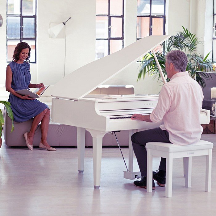 Enjoy the luxurious appearance of a grand piano cabinet with a polished finish, as well as grand piano touch and tone.