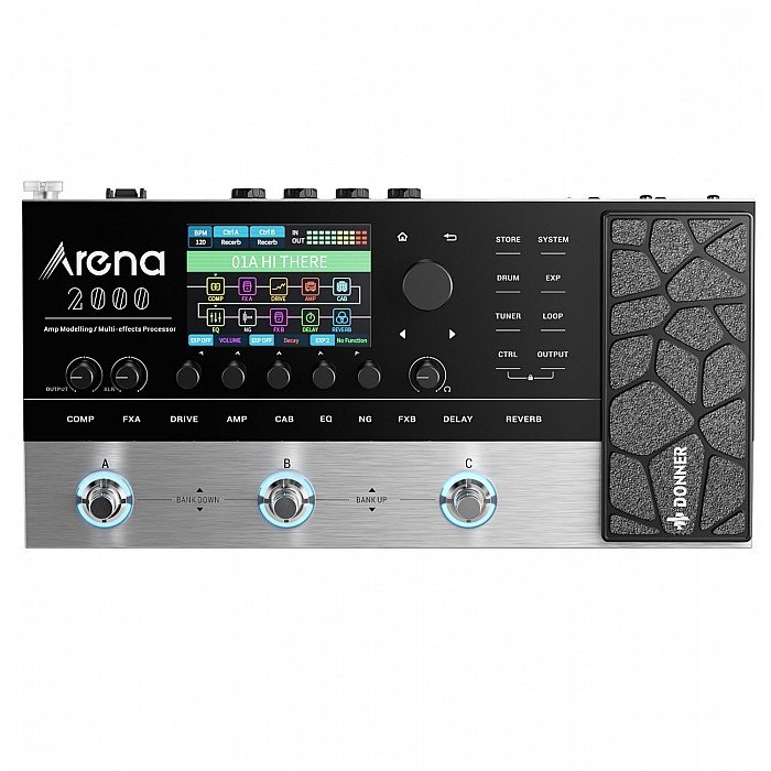 With FAVCM technology and high-precision 24bit/44.1kHz audio processing, Arena2000 Multieffects Processors greatly reduce the "plastic taste" of the digital effect, making the tone more layered, allowing you to play real emotions without reservation. Arena2000's touch mode complements its small function panel design, and the navigation is simple and clear. Both amateur and professional musicians can easily get started. It can be the finest accessory to have with you at all times, whether you're in the studio, on stage, or in your bedroom. Arena2000 has Guitar In, Aux In, MIDI In, XLR L/R, and Unbalanced 1/4. A Cab Sim output option allows users to switch between the 1/4 output port and the XLR output port, which makes it handy for artists to perform live.