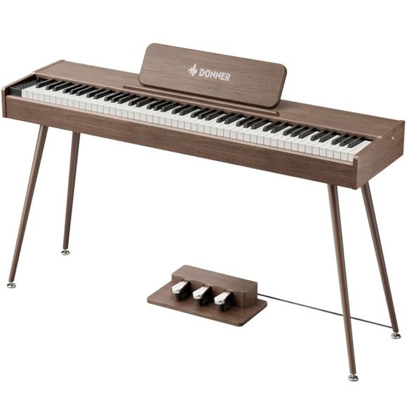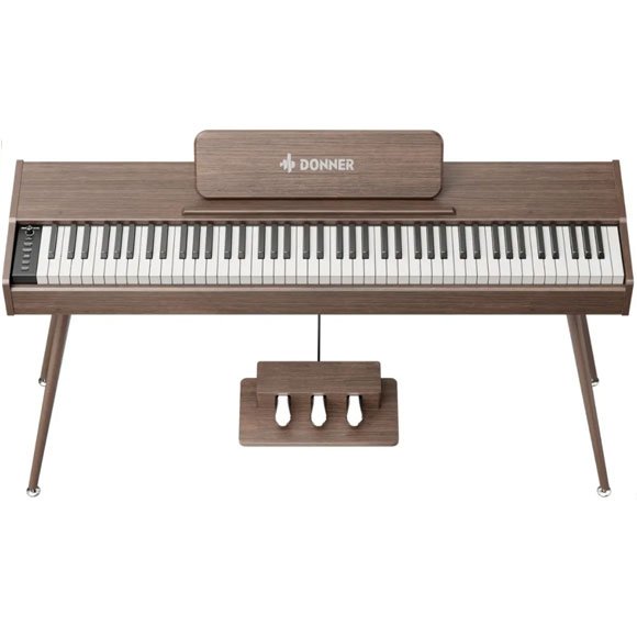 The Donner DHP-200 Pro Wood is a stylish electric piano that combines classic piano feel with modern features for home, teaching, and immersion. The elegant wood-finish cabinet gives the instrument a warm and exclusive expression that fits naturally in living rooms, music rooms and educational environments. The piano is perceived more as a piece of furniture than as technical equipment and invites you to play on a daily basis. Equipped with 88 graded hammer action keys (GHS), where the resistance is heavier in the bass register and lighter in the treble – just like on an acoustic piano. It provides a more natural response and makes it easier to work with dynamics, finger control, and musicality. The keyboard provides a solid foundation for developing correct playing technique.