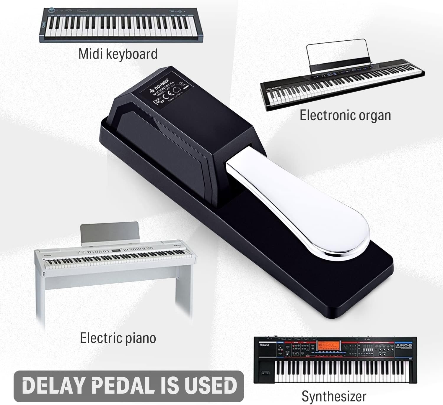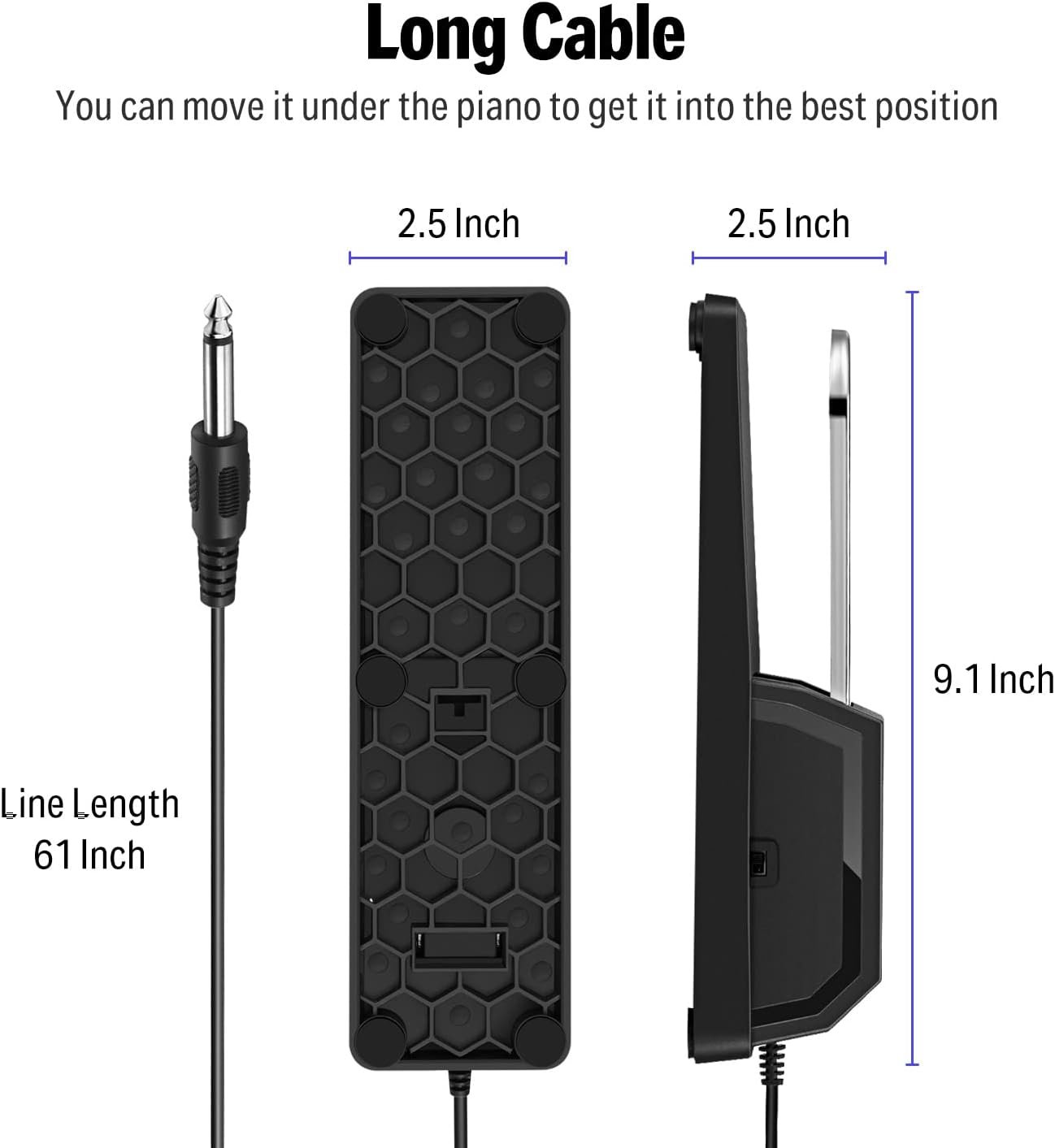Universal Sustain Pedal: Classical design, suitable for most of electronic keyboards and digital pianos, etc. Quick Response: When you play piano or keyboard, the notes will respond quickly as you step on the sustain pedal. And the sound quality will be enriched. A 63-inch cable can let you move the pedal under the piano into the best position.