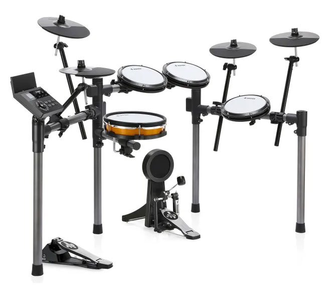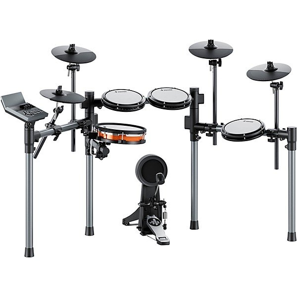 Mesh surfaces make practice feel more authentic. All pads use tightly woven mesh that absorbs impact while delivering consistent rebound. The 10" dual-zone snare and 6" kick pad detect multiple strike zones for rimshots and expressive footwork. This design supports nuanced technique and longer practice sessions, all while keeping volume low and wear minimal compared to rubber pads.