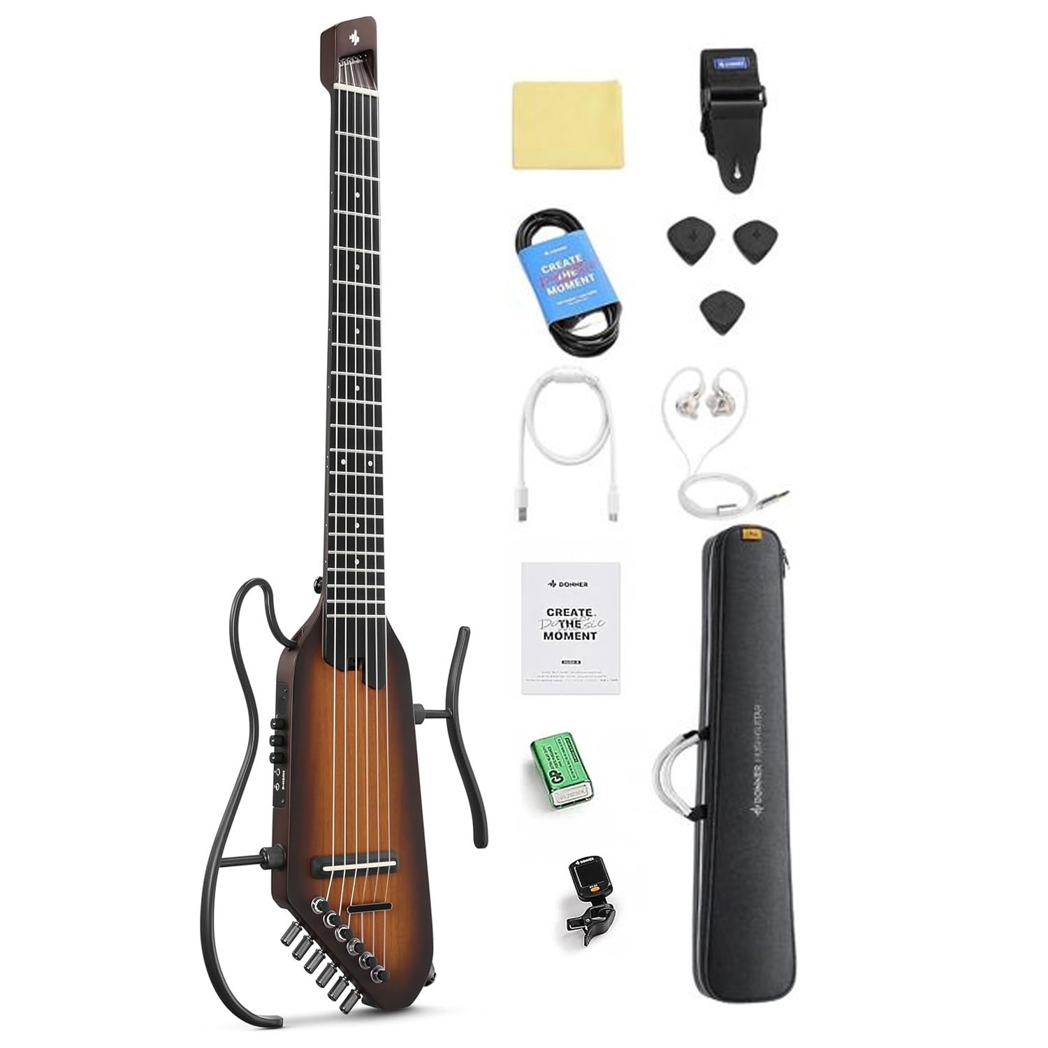 The HUSH-C nylon string electric guitar blends comfort, portability, and performance. Its headless design, quick-release stand, and built-in tuner make it ideal for home practice or outdoor gigs. Featuring a custom piezo pickup and DONNER HPS-II system, it delivers smooth, natural tones. Lightweight and versatile, it’s perfect for beginners and pros alike. Take your music anywhere with the HUSH-C!\