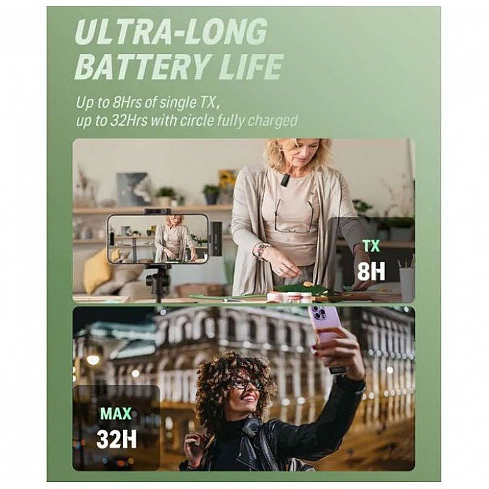 The Donner VPM-10 wireless microphone offers up to 8 hours of continuous use on a single charge. The included charging case offers up to 3 charge cycles, for a total run time of 32 hours, making it ideal for long livestream performances, interviews, podcasts, vlogging, and other recording situations.
