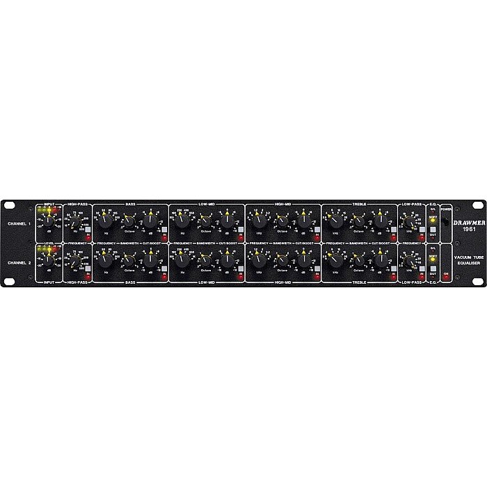 Designed to complement the widely acclaimed Drawmer 1960 Mic Pre-Amp Vacuum Tube Compressor, the 1961 Vacuum Tube Equalizer combines low-noise circuitry with no fewer than twelve active tube stages to provide two channels of exceptional equalization possessing unique 'personality'. Rather than employ a continuously variable resistor as a means of frequency control, the 1961 utilizes the same rotary 'step' switching system used in vintage designs.