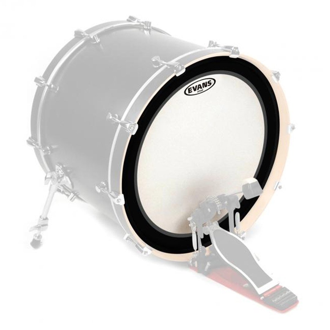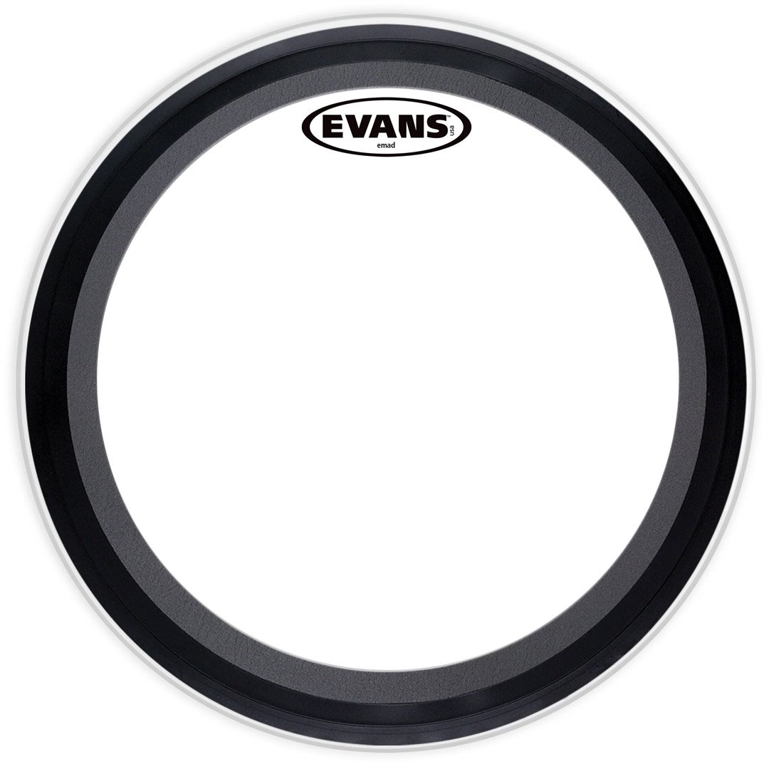 Evans™ EMAD™ series features a single ply of 10mil film providing an ideal balance of punch, power and low-end. The unparalleled industry standard Externally Mounted Adjustable Damping (EMAD) system allows the player to adjust attack and focus. The coated surface provides more low register and attack. Evans EMAD Coated Bass Drum Heads are made of a single ply of 10-mil film that creates a pretty balanced punch with moderate attack and focused low-end frequencies. This head is fairly versatile, able to fit right in across a wide range of styles from jazz to metal. The Externally Mounted Adjustable Damping system - or EMAD - affects how much attack and resonance the head produces without having to remove the head itself. Think of it like a circular pillow.