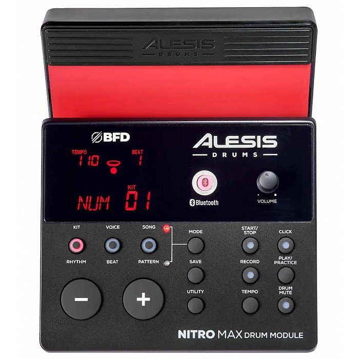 Nitro Max raises the bar for both beginner and more advanced drummers, delivering an authentic playing experience with ultra-quiet Alesis mesh drum heads, all in a compact design. Featuring 32 different kits from the renowned BFD drum sample library, Nitro Max offers seamless play along with music streaming services via Bluetooth, a host of built-in learning features, and 3-months of Drumeo for unlimited lessons with the world's best instructors. Nitro Max offers everything you need to learn or improve drumming skills, and to get good – fast. Premium mesh heads offer a responsive, enjoyable playing experience with minimal external noise, so you can practice whenever you like. A wide range of ultra-realistic drum sounds provide a truly immersive drumming experience, whatever your style of music. And a host of different learning tools help you practice and improve your timing and playing. Plus you can seamlessly play along with your favourite tracks from Spotify, Apple Music and other streaming services via Bluetooth connectivity.