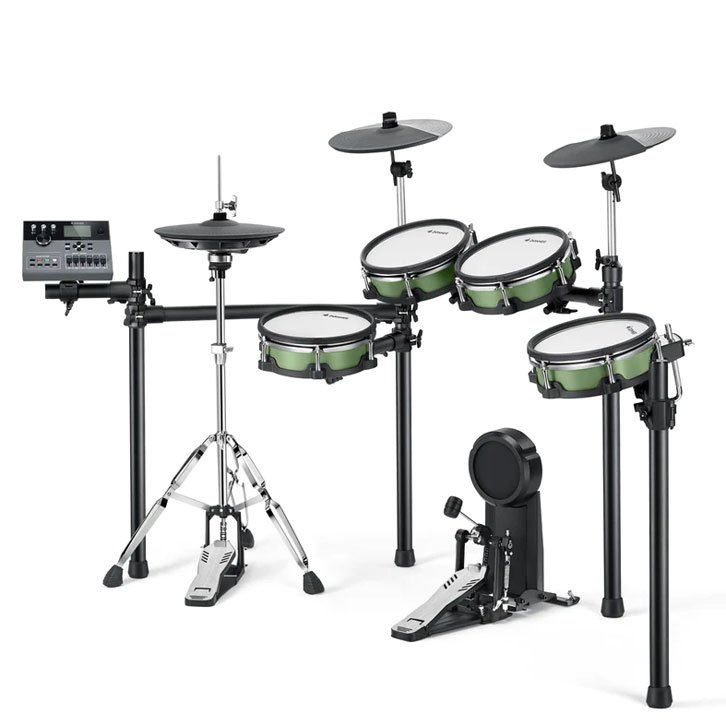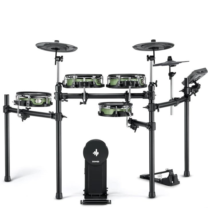 Prepare to be awe-inspired by the Donner DED-500 Electronic Drum Set. It's not just a drum set; it's a masterpiece of modern drumming technology. Featuring a brand-new module, a powerful sound library, and the flexibility of expansion ports, the DED-500 empowers you to craft your unique drumming universe. The sleek design, complete with a metal pressure ring that emulates the feel of acoustic drums, ensures an authentic and immersive playing experience. Connectivity is king, and the DED-500 Electronic Drum Set rules the realm. Seamlessly integrate with DAW software via USB MIDI or the audio output interface. Whether you're hitting the stage, practicing at home, or laying down tracks in a small recording studio, the DED-500 adapts to your needs.