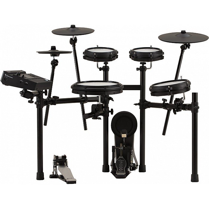 New pads, a new module, and a whole new world of functionality take the Roland TD313 well past its reasonable price point and straight into professional territory. First, the V31 sound module features the same sound engine as Roland's flagship V71, as well as its onboard Wi-Fi, which makes downloading new sounds easier than ever before. What’s more, you can import your own sounds via an SDHC slot (SD card sold separately) to craft wild custom kits or borrow a couple of studio-quality artist signature kits by using your new 6-month Roland Cloud Ultimate subscription. Finally, the pads are a combination of old classics and cutting-edge designs, sporting thin CY-12C-T and CY-14R-T cymbals, a time-tested KD-10 kick tower, the superbly nuanced PDX-12 snare pad, an expressive VH-10 hi-hat pad, and three new PD-H Standard series tom pads. You also get Roland’s MDS-COM2 drum rack, so you can set up and start playing in no time.